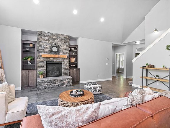 Stunning, one of a kind, custom home on 5 peaceful acres. Large windows throughout highlight the serene territorial views, bringing in lots of natural light. This home features a great room w/ vaulted ceilings, cozy fireplace, built-in shelving, concrete floors w/ radiant heat, gorgeous kitchen w/ SS appliances, island & lots of cabinet space. Spacious primary bedroom on the main level w/ oversized windows, walk-in closet & beautiful primary bathrm w/ double vanity & tiled shower. Bonus room & office upstairs. Oversized 2 car garage w/ additional room for work space, gym space or just additional storage. HUGE covered deck, great for entertaining all year long. The yard is a blank canvas, bring your ideas.