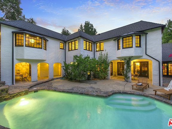 Hidden behind privacy gates and built during Hollywood's glamorous silent film era, this distinguished c.1925 English Tudor is a timeless, elegant showstopper. 4 beds/4.5 baths, Guest House and Pool. Dramatic 2 story entry leads to a grand step-down living room featuring custom illuminated bookshelves by renowned architectural firm Project Room LA. Adjacent den has French doors that open effortlessly to the inviting pool, spa and grassy yard. Formal dining, Cook's eat in kitchen, Expansive primary bedroom is a true sanctuary. Revamped baths feature Lefroy Brooks fixtures and gorgeous period tiles. Lovely guest house with separate entrance originally a music studio is now a creative office/screening room. Gated off-street parking for 6+ cars. Rarely does an intact, brilliantly upgraded estate of this caliber appear on the market. Strolling distance to Griffith Park hiking trails, the Greek Theater and essential shops, movie theaters and restaurants in nearby Los Feliz Village.