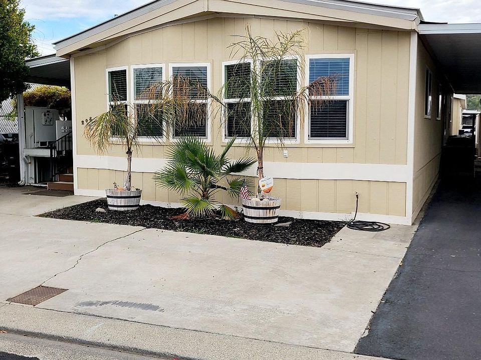 Welcome to this beautifully remodeled manufactured home nestled in a gated Senior Community. This 2-bedroom 2 bath home has undergone an extraordinary transformation, offering modern living in a peaceful neighborhood. The kitchen has granite counters, updated cabinets and appliances. The bathrooms feature newer fixtures and upgrade vanities. The attractive new vinyl plank flooring offers charm and modern convenience. If you are looking for wheelchair access, there is a modern lift to accommodate you. This property offers a lifestyle of comfort and relaxation.