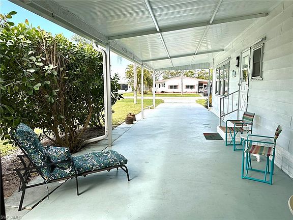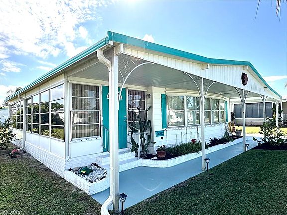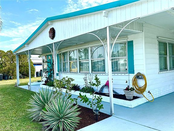 Welcome to this delightful 2-bedroom, 2-bath home, located on one of the larger lots in the desirable Imperial Harbor 55+ community. Enter through the foyer, featuring built-in cabinets with a glass display, and step into the bright living room filled with natural light. The open kitchen, designed for convenience, includes a built-in cutting board on the counter and a pass-through to the dining room, with built-in cabinets for added storage. A bonus room leads to the spacious Florida room, a standout feature with windows on all sides, its own outdoor entrance, and an AC vent for year-round enjoyment. The master bedroom is a retreat with bay windows, a walk-in closet, and an en-suite bathroom offering dual sinks and a walk-in shower. Outside, the long carport is lined with privacy Clusia, while the shed provides functional extras, including a washer, dryer, laundry tub, and built-in upper storage. Club membership included. Giving you access to the pool, library, fitness center, pickleball, bocce, shuffleboard, billiards, and more.
