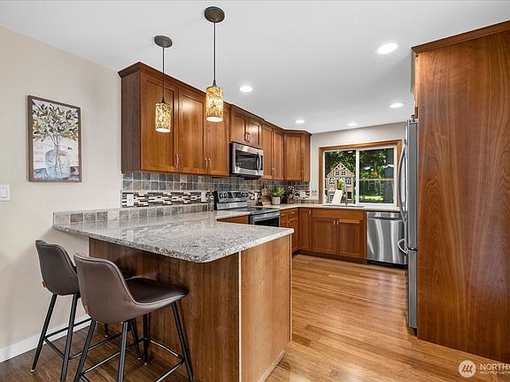 Tucked in the desirable Meridian Manor neighborhood, this single-story gem offers private access to Lake Meridian via a gated HOA park with a boat launch just down the street. Featuring 3 spacious bedrooms and 2 full baths, the home boasts a remodeled kitchen with cherry cabinets & granite counters, an open great room with cozy wood-burning fireplace, & generous natural light throughout. The primary suite feels like a private retreat with direct access to the backyard, where a hot tub awaits beneath a pergola—perfect for unwinding under the stars! The large yard offers plenty of privacy with mature trees, a concrete patio, & a spacious lawn to relax or play. Bonus with RV parking & hookup! Store your boat on-site and launch with ease!