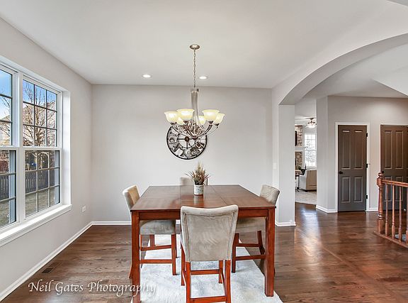 INSTANT EQUITY! PRICE REDUCED BELOW VALUE FOR QUICK SALE! This 5 bedroom, 2.1 bathroom home has everything, including a prime location in Grande Park and it is in Plainfield North High School District. The subdivision features 3 pools, a clubhouse, tennis, volleyball and basketball courts, playgrounds, picnic areas and more! A covered porch welcomes you outside and a grand 2-story foyer welcomes you inside with a bright open floor plan and hardwood floors on the main level. Cozy fireplace with stone surrounds and white mantel in the bright family room with new carpet. Quiet office, accessible from the family room and open kitchen with a center island and breakfast bar. Kitchen cabinets with crown molding, new granite counters with undermount sink, new backsplash and SS appliances. The second floor features 5 bedrooms, landing and 2 full bathrooms. Master Suite with walk-in closet and private bathroom featuring new double vanity with granite top, mirrors, lights, faucets, soaking tub and separate shower. New carpet. Freshly painted throughout. Full unfinished basement with rough-in and 3.5 car garage