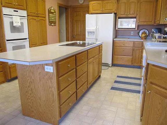 The floor plan of this newer home has a semi-open concept. As you walk into the front door, the foyer opens to a spacious living room with a vaulted ceiling, which flows to the dining area and kitchen with large windows and a patio door leading to the new composite deck with a stunning view overlooking the river valley for miles. The dining area includes a lit china cupboard and a custom made stained glass window. The kitchen has beautiful custom made oak cupboards with pull out drawers. There is an island with a built-in stove top and pop-up vent, double oven, refrigerator, dishwasher disposal, microwave and well illuminated recessed lighting. The master bedroom also has large windows with that beautiful view a master bath with a whirlpool tub and a large walk-in closet. The basement has a spacious family room with a gas fireplace, wet bar area, two windows and walks out to a patio. There is a 3 car heated garage with lots of storage. This amazing home is a must see!