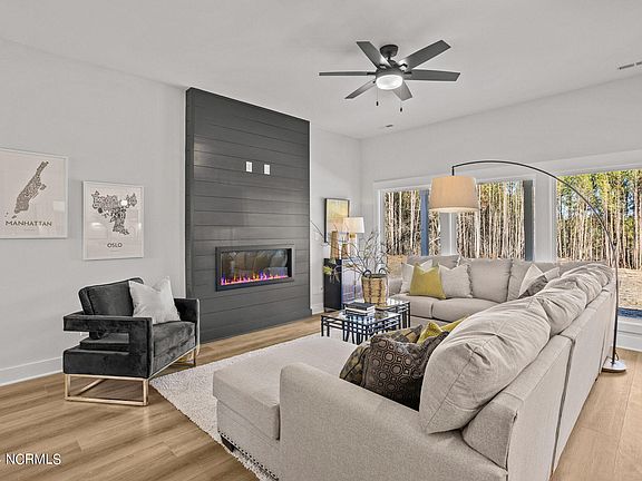 Custom new construction in Eagle Springs brought to you by Wolfe Development & Construction. Nestled back off the road, this home offers an abundance of privacy w/ a serene setting. Boasting 2100+ sq ft of living space, this home sits on an impressive 1.87-acre lot, providing ample space for all your needs. With no restrictions or HOA, you have the freedom to make this property truly your own. 3 bdrms, 2.5 ba, a versatile flex room & bonus room that could serve as a 4th bdrm or any other desired space. Open concept design creates a seamless flow throughout the home. The primary suite & flex room are conveniently located on the main level, providing easy access & privacy. Living room showcases an electric fireplace and impressive large windows that offer breathtaking views of the backyard surrounded by majestic pines.The expansive kitchen is a dream, complete w/ plenty of cabinets, SS appliances, coffee bar area, island w/ storage, a sink, & an eat-at area. The primary suite is a true retreat w/ trey ceilings, bathroom offers double vanity, tons of cabinets, walk-in tile shower, & custom walk-in closet. 2 bdrms, full bath & a bonus round out the upstairs & every room w/ incredible views. Other features, a unique 3 window design in foyer bringing in more light & making space feel even more open & inviting. Exterior of home showcases stunning wood accents, adding to its overall charm & appeal. Step outside onto the covered back patio, where you can sip a cup of coffee & revel in the peace & tranquility of country living. This property truly offers the best & within 20 min of Pinehurst, 35 min from Asheboro & 50 min from GSBO. Schedule a showing today & experience the unmatched beauty & luxury it has to offer!