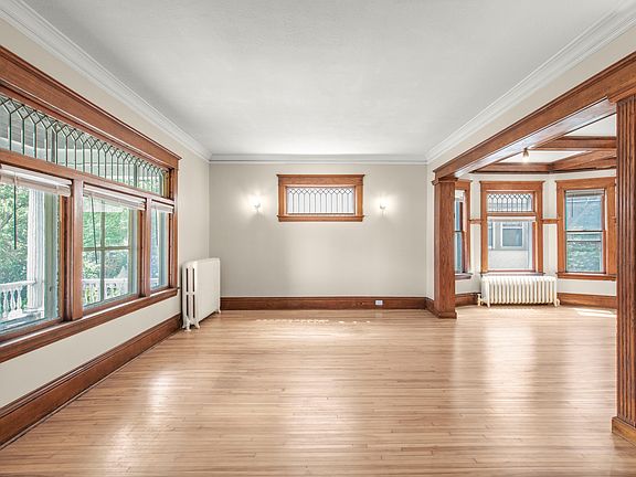 Spacious apartment offering a butler pantry, formal dining room, living room and a front porch area. Three large rooms, one a bit larger offer all types of potential, a sitting room / den or a large home office.