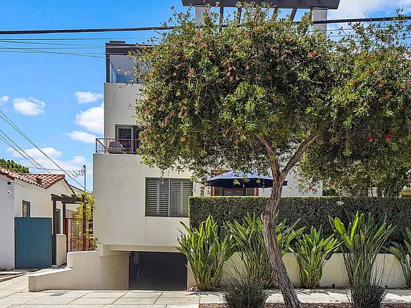 This stunning, artistic tri-level townhome, tucked behind mature hedges on a tree-lined street is an absolute gem. Whether entertaining, nesting, or working from home, you'll bask in the abundance of natural light, and enjoy the privacy of Living like a single family home with a unique address, a direct entrance and private, secure parking. Both bedrooms are generously proportioned, with the primary featuring custom walnut built-ins and an en suite bath with a double vanity. On the second floor you'll find a cook's kitchen with stainless appliances and Saltillo-tiled floors which is open to the dining room overlooking the tree tops. The double-height living room, centered around the dramatic fireplace, has soaring windows and a balcony with sliding doors to let in the ocean breezes. Upstairs is a spacious loft - let your imagination run free up here - and yet another wrap-around balcony with peek-a-boo ocean views. Very close to the dining and shopping on Main Street as well as the famous Santa Monica beaches. A dream home in a dream location. 12 month lease minimum :: Security deposit amount contingent on credit score