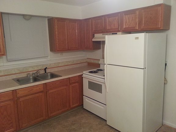 This is an upper two bedroom unit of a duplex that is freshly painted, new flooring, blinds, and newer windows.
