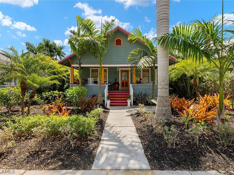 Step back in time to the charm and character of 1920s Florida with this quaint Arts and Crafts bungalow style home nestled just moments from downtown Ft. Myers. Built in 1922, this historic gem exudes timeless elegance and period features that capture the essence of a bygone era. As you approach this charming residence, you're greeted by a picturesque facade adorned with classic architectural details, including a welcoming front porch perfect for enjoying balmy evenings and greeting neighbors with a friendly wave. Due to the unique elevation, this treasure has reigned supreme for over 100 years and still going strong...resilient wtih a lot of stamina! **Furnishings are offered and are price negotiable**