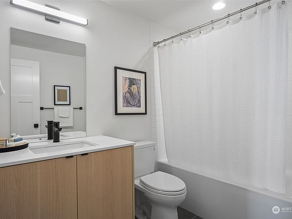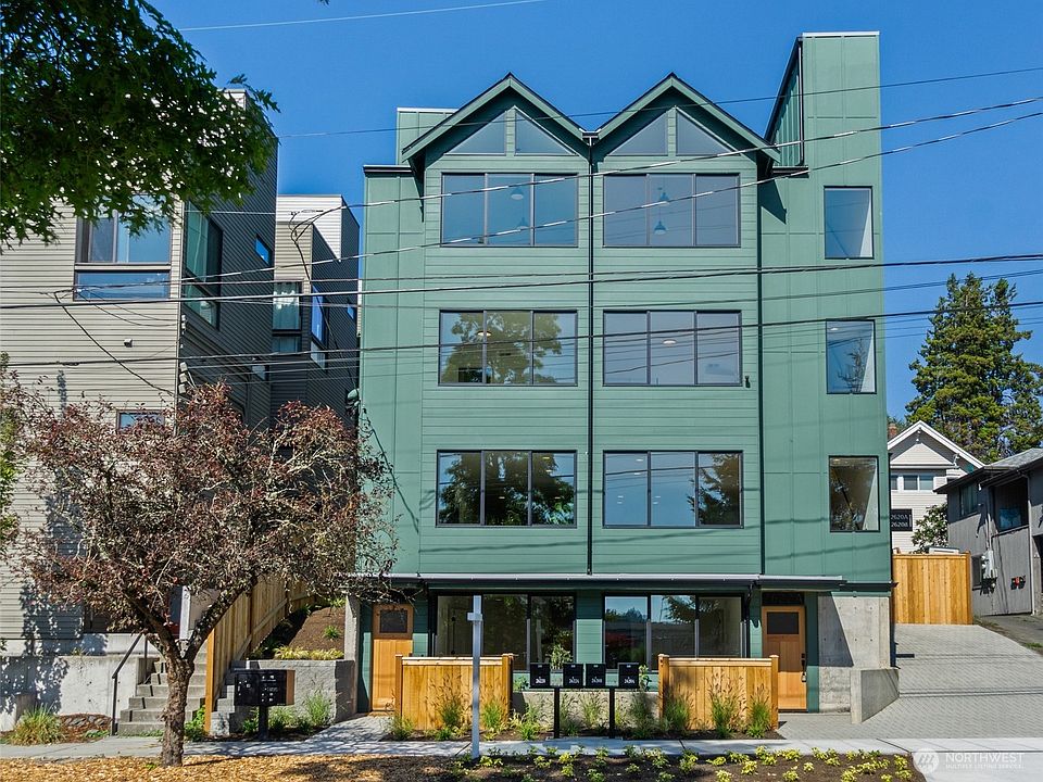 This stunning Ballard townhouse showcases the perfect blend of design & function. Home impresses with 4 beds, 3.25 baths, real hardwoods & top of the line finishes throughout. Lower level features large storage space, generous sized bedroom and attached full bath. Main level lends itself to luxurious living with large windows, open concept living room and well appointed kitchen featuring two tone cabinetry, s/s appliances, double oven and quartz counters. Upper levels feature two bedrooms, full bath and Primary suite w/attached bath and walk-in closet. Mini split cooling, assigned parking space and expansive rooftop deck showcasing city & mountain views. Just steps from all the conveniences Downtown Ballard has to offer.