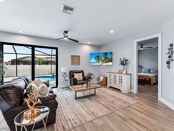 WOW.... ON 8/24/24 THERE IS NOT ANOTHER ACTIVE POOL HOME THIS NEW AND LARGE WITH A 3 CAR GARAGE PRICED FOR LESS IN OUR ENTIRE MLS* !!!! HUGE AND FINAL REDUCTION..... YOU WONT GET A BETTER PRICE !!! THIS STUNNING 4 BEDROOM /3 BATH / 3 CAR POOL HOME HAS IT ALL : 2 Large Master Suites - Cat 5-Hurricane Rated Windows & Doors - Whole House Generac Generator - WiFi Ceiling Fans - Halo Water System - Soft Close Cabinets - GAS COOKING with external venting plus 500 gallon Buried Propane tank that is practically full - remaining Lawn Care Contract!! Meticulous and Well Cared for and with almost 2200 sqft under air, this 2022 built custom home has today's desired upgrades ideal for year-round or seasonal residents AND IS STILL LIKE BRAND NEW : Modern Light Fixtures, Aesthetically pleasing Paint Colors inside and out, Wide trimwork, Custom Slider and Window Treatments, Did I already mention the 3-CAR Garage with Paver Driveway and Lanai, 42" White Cabinets with black accents, Wood look Tile Planks throughout, Under-counter Microwave, Chrome Kitchenaid Appliances, HUGE Granite island with Double Stainless Steel sinks and complimentary Tiled Backsplash, Sidelights and a Transom Window at the Front Door, 2 large sets of 8 foot Sliders leading out to the Lanai, Heated Freeform Pool with Water Feature and Sundeck, Granite DOUBLE Sinks in each Master Bath with Oversized Tiled Showers and frameless glass doors, Separate Lanai Entrance from each Master Suite, 8' Interior Doors with Black handles, OVERSIZE 3rd and 4th Bedrooms share a beautiful Jack-n-Jill Bath, Vented Closets with Wooden Racks, HUGE Laundry Room with Washer, Dryer and Utility Sink, Exterior Soffit lights, 6' white PVC fence encloses the backyard. Situated near all the new activity of the Pine Island Corridor, enjoy access to restaurants, fresh produce markets, entertainment, sports complexes/community parks, as well as being minutes from the famed fishing village of Matlacha with its Old Florida vibe, fresh seafood and art galleries. Please ask your agent for the Attached List of Upgrades !! You won't be disappointed with this beauty - schedule your showing today! ON 8/24/24 THERE IS NOT ANOTHER ACTIVE POOL HOME THIS NEW AND LARGE WITH A 3 CAR GARAGE PRICED FOR LESS IN OUR ENTIRE MLS* !!!!
