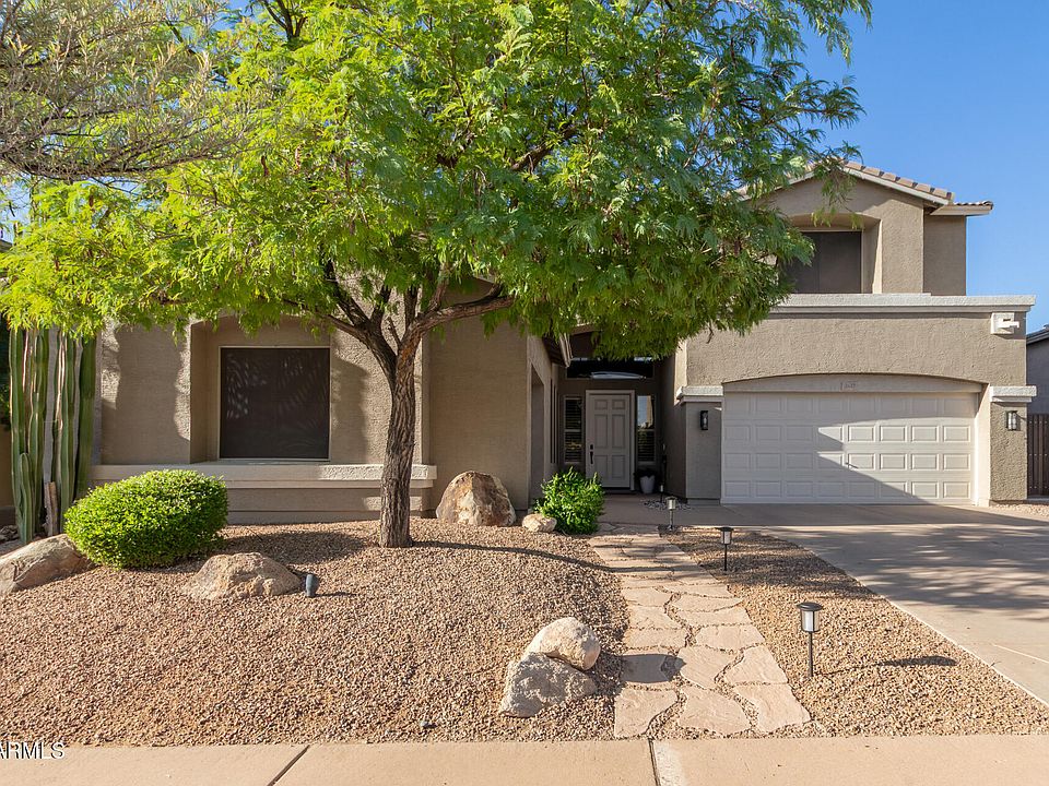 PERFECTLY LOCATED WITH MOUNTAIN VIEWS AND DESERT WASH! N PATIO MEANS COMFORT OUTSIDE YEAR-ROUND! SPLIT 3-CAR GARAGE! 5 GOOD-SIZED BEDROOMS (MASTER UPSTAIRS/BED 5 IS DOWNSTAIRS, CAN BE OFFICE)PLUS HUGE LOFT! 1.5 BATHS DOWN, 2 FULL BATHS UP! MAIN FLOOR IS ALL TILE! KITCHEN: ISLAND, GRANITE COUNTERS, 42'' CABS, GAS STOVE/OVEN, KITCHEN DESK!**BEAUTIFUL YARD: POOL W/WATER FEATURE, EXTENDED PATIO, GRASS ISLAND, BBQ, FIREPIT, LIGHTING,DBL GATE!!**EXT PAINTED 2025 / PATIO ROOFS RE-DONE 2025! **IMMACULATELY CLEAN! JUST A GEM ALL AROUND!