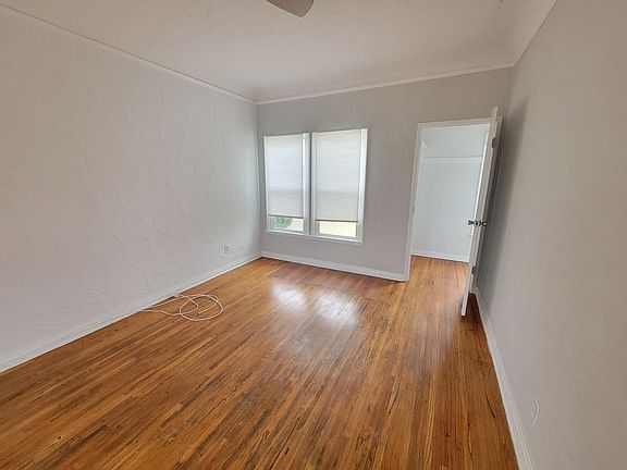 Charming Spanish Bright Lower unit in a controlled access building. Features One Bedroom, One Bath and Hardwood Floors throughout. Living room, dining room, Kitchen with refrigerator and stove. Lots of closets. Street parking only. Landlord pays for water and Trash. No laundry on premises.