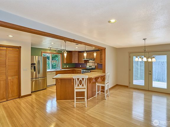 Located on the popular scenic hill neighborhood this home offers a lot of living space all on one floor. Separate living room and family room and open updated kitchen. Lots of yard space which includes large fenced area, rear deck, covered porch and convenient outdoor shed. Oversized two car attached garage and separate detached garage/shop perfect for hobbies or R.V. parking. Anderson double pane windows.