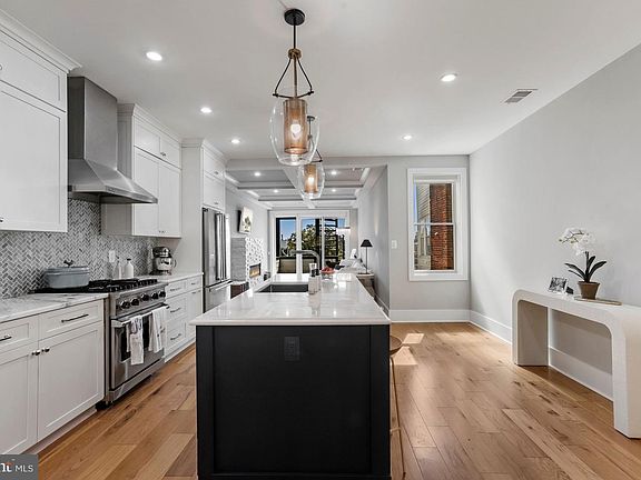 Perfect Penthouse In Columbia Heights. This expertly designed two-level condo home offers an estimated 2,000 square feet of modern living featuring three private outdoor spaces in addition to a shared fully-fenced yard, a parking option, and secure bike storage. The main level greets you with an expansive open floor plan showcasing a gorgeous gourmet kitchen appointed with professional, stainless steel Viking appliances and ample storage, a large dining area perfect for dinner parties, a sprawling living room adorned with a gas fireplace that leads you to a lovely balcony, a den that works equally as well as a home office, and a convenient half bath for guests. Designer details include hand-crafted paneling, cove moldings and coffered ceilings, wide-plank wood floors, custom built-ins, Pella windows, and more. Ascend to the second level offering an enviable owner's suite bathed in natural sunlight and an attached spa-inspired full bathroom featuring a large double vanity, rain & steam shower, and white marble tile. Two additional bedrooms, one boasting a private balcony, and each with great closet space and its own ensuite bath, complete this level. Head to the private roof deck for your morning coffee or happy hour and take in the amazing views of the city! With a Walk Score of 93, everything this vibrant neighborhood has to offer is within blocks including restaurants, coffee shops, Target shopping center, Metro (green and yellow lines), and so much more!