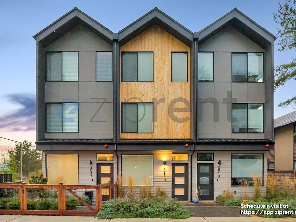 Welcome to your new home at 2623 44th Ave SW, Seattle, WA 98116. This modern townhouse offers a sleek and stylish living experience in the heart of West Seattle. As you enter, you're greeted by an open-concept floor plan that seamlessly integrates the living, dining, and kitchen areas. The kitchen is a chef's dream, featuring high-end stainless steel appliances, quartz countertops, and custom cabinetry, perfect for entertaining or enjoying a quiet evening at home. Large windows flood the space with natural light, complementing the beautiful hardwood floors throughout.