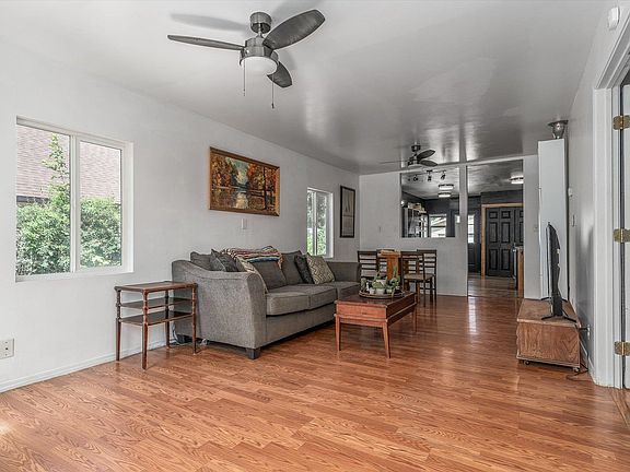 Adorable 2 bedroom, 2 bath home. Primary suite includes 3/4 bath. Updates throughout. Newer kitchen, fresh paint, main floor utilities and new roof. Huge garden, fenced backyard, oversized 2 car garage, and storage shed. There's also extra parking with carport and alley access. Great Opportunity!