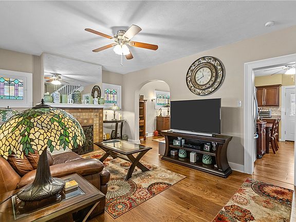 Introducing an exquisite three-story home that is a great blend of classic beauty and modern amenities. The first floor is designed for both entertaining and daily living. As you enter the living room, you will notice the lovely decorative fireplace and stained-glass windows. Sleek laminate flooring flows throughout the home. An elegant formal dining room is the ideal spot for those special occasions. The updated eat-in-kitchen is a culinary dream boasting stainless steel appliances and gleaming granite countertops. Rounding out the main level is a family room with full bath that can easily become a first-floor primary suite. Upstairs, three spacious bedrooms offer ample closet space, and an additional updated bathroom with a walk-in shower adds a touch of luxury. The finished attic provides a versatile space for an office, playroom, or an extra bedroom if desired. Outside, the covered front porch, parking pad, mature landscaping and fenced-in yard make this home truly move in ready!