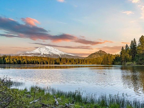 ALPINE RETREAT - escape to this Private Gated Community on Hammond Reservoir, 6 miles from Mt Shasta. Nestled on 5 acres of stunning forested beauty, this well-appointed 5 Bedroom, 3.5 Bath, 5 Car Garage home offers 3850 sq ft of living space. As you enter the neighborhood, the expansive Reservoir, its wildlife and magnificent view of Mt Shasta greet you. Feel the serenity. From the governor's driveway, you enter the front door - captivated by floor to ceiling windows with breathtaking views of the snow-capped Eddy Mountains. The open floor plan features a cook's dream Kitchen, 6 ft island, 5 burner gas stove, and Eat-in kitchen that allows you to feel part of the activity in the Living Room. Entertain family and friends. Host the holiday getaway! The expansive Primary Bedroom's wall of windows brings the outside in. Wake up overlooking the forest. The second level has 2 of the Bedrooms and second Family Room. This space will be invaluable. The detached garage is oversized (24x30) plus a 10x10 Greenhouse, Family Orchard, RV parking, 9.7 kw solar and 14 kw Backup Generator. You are only 30 minutes from Mt Shasta Ski Park, Lake Siskiyou and 47 miles of Mountain Bike Trails.