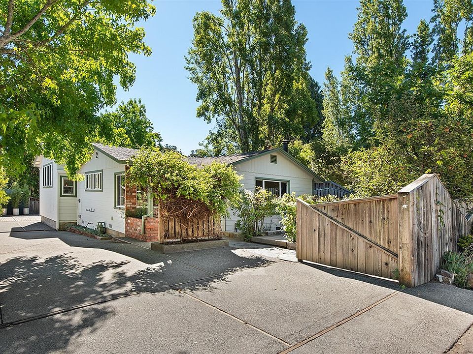 The smallest jewel box can hold the brightest bling and this fetching country Bungalow is no exception with it's sparkling character, artful playfulness and dashing charm, all wrapped up in a private setting just 4 miles from downtown Sebastopol. Billowing honeysuckle, hand laid stone paths, fruiting citrus, and easy care color spots brighten this small but mighty parcel among larger parcels on this quiet country lane. Thoughtful design elements seamlessly juxtapose the original retro home with a contemporary addition. Vaulted ceilings bring volume and the bounty of custom windows illuminate natural light fm every direction! And while the living room w/its cool Malm fireplace invites a cozy entrance, the fabulous kitchen and family room introduces an open and airy spirit and the adjoining deck pumps up a whole bunch of personality w/the outdoor shower and sauna. The barbecue is on the ready with a natural gas connection! Det. garage was built to accommodate a potential guest or office, on an upper floor w/a view! The adjoining workshop is engineered to accommodate a deck above. This home & property are turn key, move in ready & the marine banana belt location w/cooler mornings opening to blue blue skies & pleasant breezes, well...you just won't want to leave!