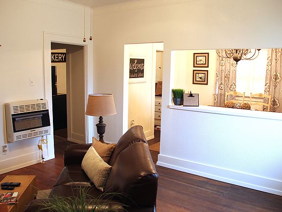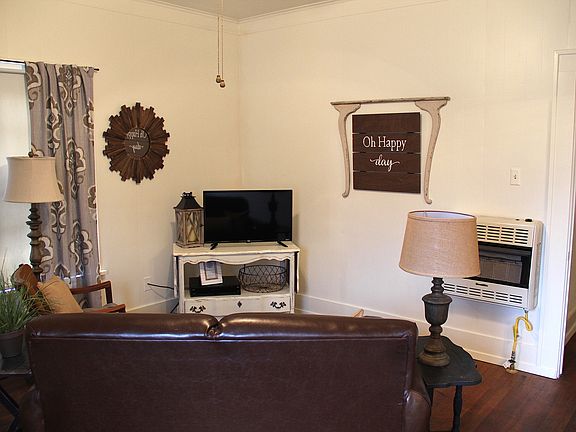 Very nice 2 Bedroom, 1 Bath updated home for sale! New siding on eaves and exterior October 2016. All new paint inside. Dishwasher/disposal and washer/dryer will stay. Fridge, stove, and all furnishings are negotiable! All new light fixtures and 4 ceiling fans. New lighting in bathroom. New flooring in kitchen and dining and tile in bathroom/laundry. Home was built in 1924. It has central air and new gas heater in Living area and additional heaters in the 2 Bedrooms that have been tested by a professional. Brick with composition shingle roof. 1 Car carport & storage closet. You must take a look–this house is charming!