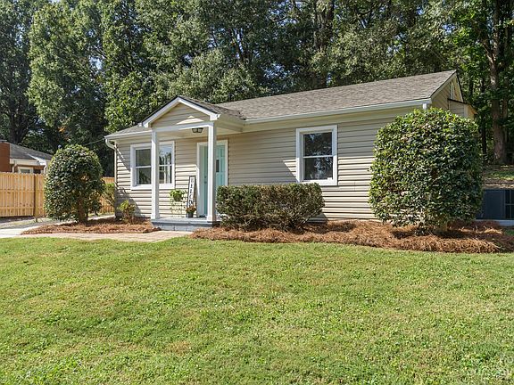 This home welcomes you with an abundance of natural light and open floor concept. Complete with new LVP flooring & new carpet in bedrooms, fresh paint & updated light fixtures. Eat-in kitchen features all new (2023) white cabinets, pantry, granite countertops, stainless steel appliances, and sleek hardware. Bathroom features new vanity and modern design touches. Sizable bedrooms and closets. This professionally landscaped bungalow sits on a huge yard with mature trees. Endless possibilities for a backyard paradise. Enjoy large concrete driveway with plenty of space to park cars. Home is in close proximity to shopping areas, restaurants, parks and I-85. Schedule your showing today!