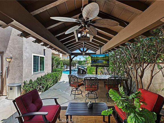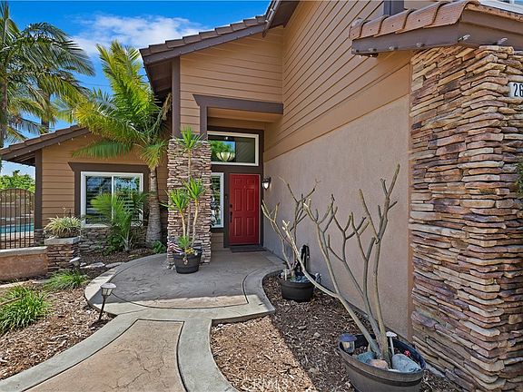 Welcome home! 2623 Toumey Lane is the one you’ve been waiting for! This beautiful 4 bedroom 2.5 bath home boasts over 2,000 square feet of living space, PAID off solar, and a sparkling swimming pool. Located in one of South Corona’s best neighborhoods & close to top rated schools, plenty of shopping and dining and around the corner from Santana Regional Park. Buyers will love the cathedral ceilings, stunning wide plank wood-tile floors, plantation shutters, and extra large baseboards. The L shaped kitchen has been remodeled with beautiful maple shaker cabinets, granite countertops and all new matching appliances. The family room features built-in surround sound and a lovely view to the green backyard. The spacious primary bedroom has vaulted ceilings and a beautiful custom bathroom. The backyard is truly an oasis- the large pool and spa has been well cared for, has a newer pump and filter and is surrounded by lush landscaping. There is a custom designed wood pergola complete with lights and ceiling fans that runs the length of the yard, it features a custom built-in BBQ complete with a bar, TV, and fridge. There is also a nice shaded sitting area as well as a gas fire pit. Around the corner there is a large grassy area and a gated side yard that can be used as a storage area or dog run. The three car garage is stunning and has epoxy flooring. Off the garage, there is a nice sized laundry room with plenty of cabinets and counter space for folding. Other features include energy efficient dual paned windows, a newer heater and water heater, and under the stairs storage, no HOA and low taxes. You’ll have to see it in person to truly appreciate it, schedule a viewing today!