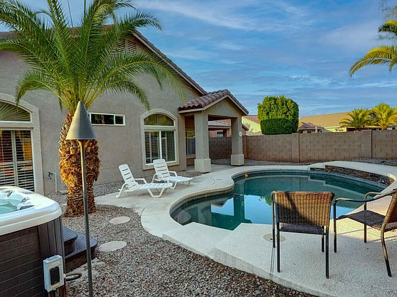 This single level, Chandler home has a 3-car garage, beautiful pool and a brand new roof in 2025 - with a North/South lot! Ideal layout perfect for both entertaining and everyday living. Enjoy seamless flow from the formal living room into the bright family room and gourmet eat-in kitchen, complete with a huge center island, granite countertops, pantry, tile backsplash, stainless steel appliances, gas stove and refrigerator included. Upgraded neutral tile flooring throughout the home and plantation shutters add a touch of elegance. A versatile den/office could easily be converted into a fourth bedroom to suit your needs. The main suite offers a private exit to the backyard, a gorgeous, fully remodeled bathroom with a luxurious tiled shower and a large walk-in closet.