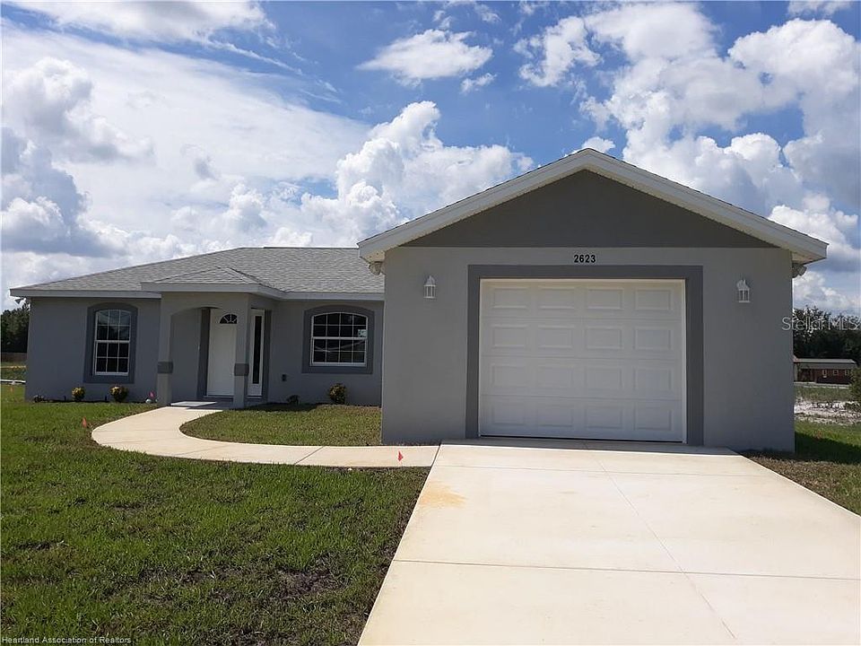 New Construction with nice curb appeal. This home has a split floor plan with 3 bedrooms, 2 baths and an oversized 1 car garage. Nice tiled entry greets you at the front door. Step inside to cathedral ceilings and vinyl plank flooring throughout the home. Kitchen has white wood cabinets, granite countertops and stainless steel appliances. Nice sized master bedroom and bathroom with walk-in shower and dual sink vanity. Inside utility room with washer/dryer hookup, electric water tank and a/c air handler and still enough space for a pantry. Home also has a 10x10 back screened porch for the grille. Well irrigation for the lawn to keep it green year round. Have peace of mind with a Home warranty included for 1 year from CO date. Be one of the first to see this home so schedule your appointment today!!