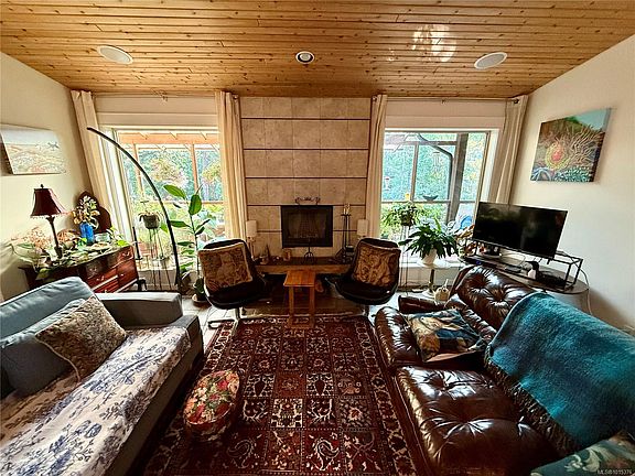 One Owner / 2008 Built Home – Custom Home. Architecturally designed with great room concept living / vaulted cedar ceiling, wired for sound, primary bedroom with ensuite + walk-in closet, cozy wood burning insert / fireplace, radiant tile floor heating, level entry with main floor living, 2 Bed / 2 Bath on main floor + studio suite in lower level / walk-out basement, lots of storage in crawl space, single carport, low maintenance .46 acre lot, sunny south facing back deck, metal roof, municipal water, affordable moorage at nearby Thieves Bay Community Marina and 9 minute drive away from the Driftwood Shopping Centre. This Property offers good value in a quiet neighbourhood with the added advantage of having a mortgage helper.