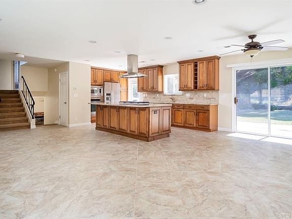 Welcome to this wonderful Serena Park Estates home. This multi-level home is located on a culdesac, convenient to schools, shopping, dining and freeways. The double door entry leads to main floor consisting of a beautiful open island kitchen that has been completely remodeled with granite countertops, new soft close cabinets and drawers, stainless steel high-end appliances, hood, 5-burner gas range, refrigerator, ovens and recessed lighting. The kitchen is open to the dining area and gathering room making it perfect for entertaining. Sliding door leads out to the upper-level yard. Downstairs features the family room with a cozy fireplace, half bath, and an extra conveniently added closet for storage. A slider opens to lower-level patio in backyard. The two-level yard lends itself to a future pool on one level while still maintaining a level to satisfy all your gardening desires (garden shed included). From the main level, a half flight upstairs leads to four spacious bedrooms including primary bedroom and bath. Carpeting in all four bedrooms, Family room, Halls and Stairs. Whole house fan and ceiling fans in most rooms. A great house waiting to become your home.