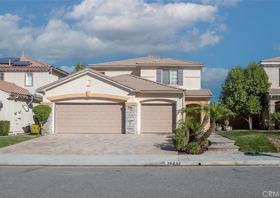 This rare 4-bedroom, 2.5-bathroom Stevenson Ranch masterpiece turns decadence into an art form with its delicate fusion of classic and contemporary elements adorning its generous 2,262-sqft of living space. Punctuating a serenely secluded cul-de-sac, this two-story treasure stands preciously poised amongst meticulously manicured landscaping for enviable curb appeal. An intricate equity of laminate and stone flooring, classy recessed lighting, opulent light fixtures, a wealth of built-in storage space, and wall niches that beg for decorative accents imbue this property with unmatched character. The first floor introduces an immaculate formal living room, family room with welcoming fireplace, and convenient guest bathroom. The family room opens onto a sparkling gourmet kitchen sure to stoke culinary creativity with its built-in state-of-the-art stainless-steel appliances, chic countertops, and custom backsplash. The second floor offers 4 bedrooms, including the lavish primary bedroom, and 2 bathrooms. Every bathroom in this lavish home is gilded with golden fixture detailing for that luxurious Midas touch. Distinguished by a private balcony with stunning views, an accommodating walk-in closet, and an elegant private bathroom, the primary bedroom satisfies demanding tastes. Its bathroom boasts a double sink vanity, soothing soaking tub, and separate shower. A dedicated laundry room and attached 3-car garage complete the conveniences of this one-of-a-kind residence. Soirees are inherent with the sprawling entertainer’s backyard, complete with an inviting pool, heavenly spa, the summer sanctuary of a covered patio, and inspiring panoramic views. This home is zoned as part of the proud William S. Hart Union School District and stands close to parks, schools, popular dining options, and supermarkets. It’s also less than 5 miles from the 5 freeway. For those who believe life is meant to be enjoyed, this home offers an extraordinarily singular opportunity to reside in a solid dream.