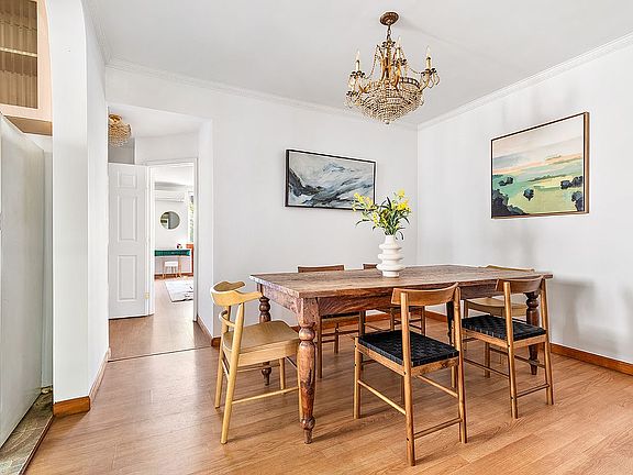 - First-floor apartment features 2 bedrooms, 1 bathroom, a windowed kitchen, separate dining area, and direct access to the backyard