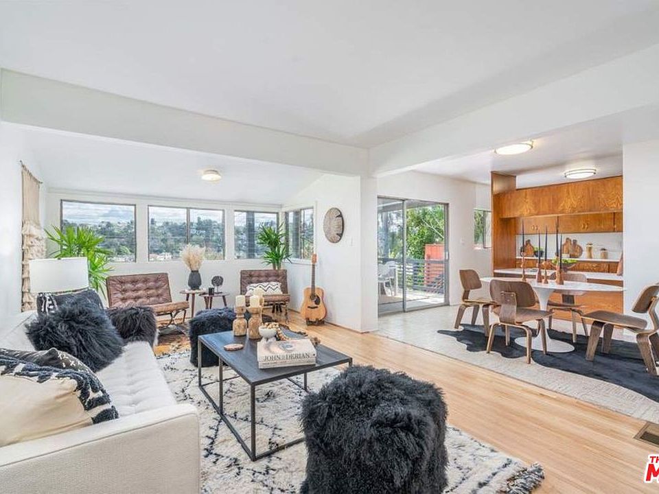 This charming early Mid-Century 4 bed, 2 bath with large bonus room sits perfectly perched at the top of a quiet street in the Los Feliz hills. Home is unoccupied and beautifully staged. Lovingly maintained by the same family for over 60 years, with numerous recent upgrades including beautifully restored hardwood floors and new paint inside and out. A new owner can move right in or update it and make it their own. Natural sunlight pours in through huge picture windows with views of the adjacent Silver Lake hills. Many original details still intact. Multiple areas to enjoy the outdoors including a deck off of the kitchen/dining room, a large patio on the lower level and a flat grassy patch ideal for a vegetable garden, playground or pool. 2 Car garage with direct access. A short walk to the best shops & restaurants on Hyperion Avenue including, Trader Joe's, Gelson's, Speranza, Tomato Pie, Hyperion Public, and more . Franklin Elementary.