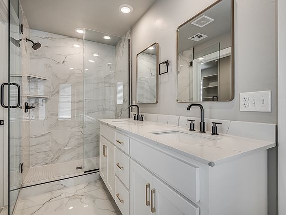 The home features custom soft close cabinets, quartz countertops, glass shower doors and designer lighting and tile packages.