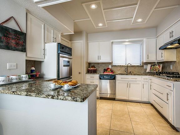 Serenity and fun awaits you in this well kept home with contemporary flair, high ceilings, pool, beautiful secluded patio, and nice updates. Granite counter tops, decorative lighting, nice carpet, wood laminates and tile. Built in wet bar. Kitchen has double ovens, plenty of cabinets, nice breakfast area, pantry, and built in desk. Nice size owners retreat with super shower in owners bath with dual sinks and closets. The bonus room could be a second living area, study, or dining room. This home is made for entertaining and enjoying your family. All bedrooms are spacious with nice size closets. Close to Presidents George Bush Turnpike and shopping. Easy access to I-35, DFW, Lovefield and downtown.