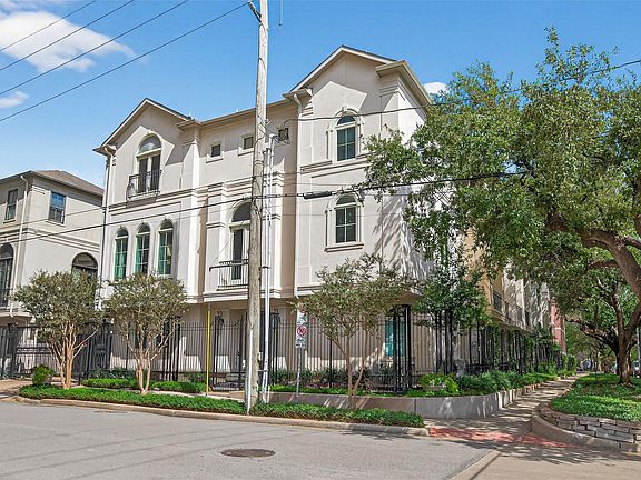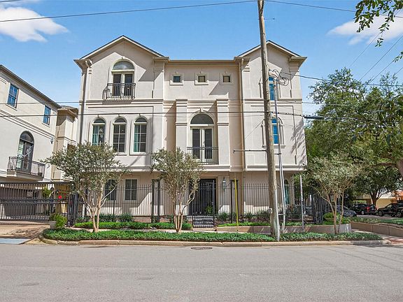 Step into this beautiful Midtown residence, showcasing timeless design & modern comfort. Enter thru grand double wrought-iron doors into a home defined by craftsmanship & architectural detail. Soaring ceilings, rich millwork, French doors & abundant natural light create an inviting atmosphere create an atmosphere of elegance & warmth. Gleaming hardwood floors flow through open living areas accented by custom built-ins & a wrought-iron staircase. The kitchen boasts granite countertops, SS Appliances & 54” cabinetry—perfect for both everyday living & entertaining. The kitchen boasts granite countertops, SS appliances, 54” cabinetry & under-cabinet lighting. The primary suite features his-and-hers closets, a Juliet balcony & a spa-inspired bath w/ dual vanities, jetted tub, & frameless glass shower. Surrounded by mature trees, this home offers low-maintenance living w/ no yard upkeep. Ideally located near Montrose boutiques, fine dining, nightlife & Houston’s world-class Medical Center.