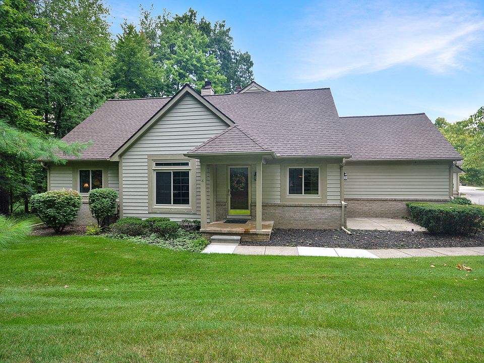Enjoy the convenience of maintenance-free exterior living in this one-story 2 bedroom, 2 bath end-unit condo. Situated on a cul-de-sac and backing to nature, you will appreciate the beautiful views from every window. Great room features cathedral ceiling with gas fireplace. Kitchen offers plenty of cabinets with solid surface counters. Appliances included. Dining area has sliding door leading to patio. 1st floor laundry has upper cabinets and includes washer & dryer. Master suite features walk-in closet, 8 ft. wall closet, private bath with shower and sliding door leading to 2nd patio. Newly finished family room with laminate wood floor in lower level. Newer windows (2019) with mutton bars. Roof replaced (2021). Association is in process of painting exterior of buildings. Quick occupancy. Located in highly desirable Maple Forest community. Association fee $320/mo includes water, exterior maintenance of grounds and building.