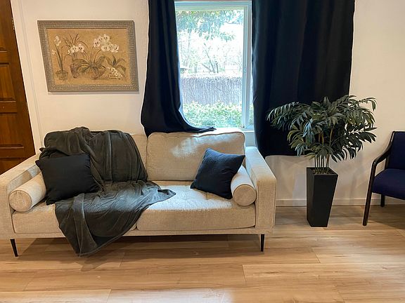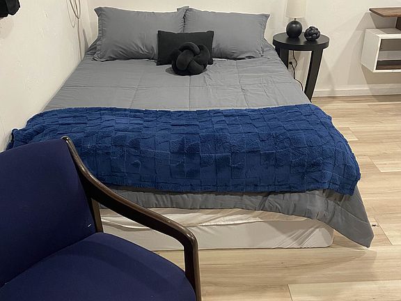 Private! Unit is a detached studio located behind main house with side gate entrance.