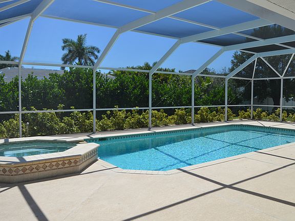 Villa 52 is located in a tranquil neighborhood in extreme southwest Cape Coral near Cape Harbor Marina. This 3-bedroom 2-bath pool home is on a palm tree lined street situated away from the hustle and bustle of the town but is only a quick car or bike ride to amenities such as groceries, gas, restaurants and more.