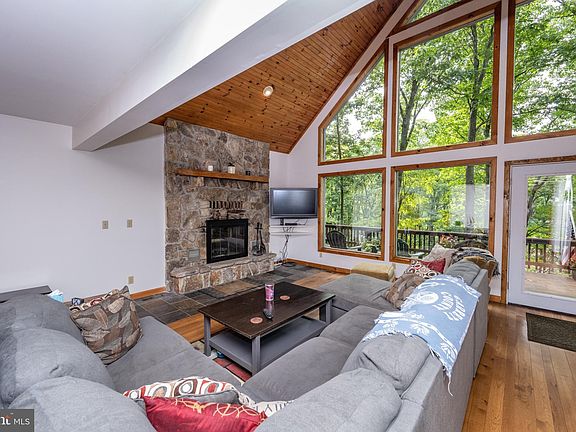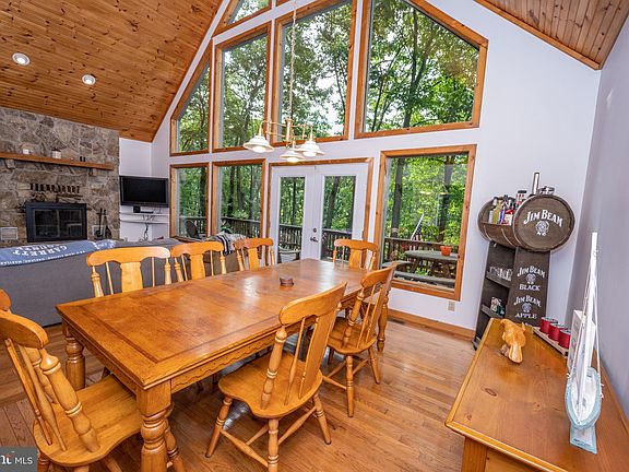 Split-Lakefront chalet in coveted Cherry Creek Cove with 100 feet of level, deep water frontage including a private Type A dock permit! Very private, quiet setting on 3.29 acres that borders Maryland Environmental Trust land that can never be built on - and leads up to the Deep Creek Lake State Park. This rustic home features 3 finished levels, a wood burning fireplace, primary bedroom with private balcony, open floor plan, stone exterior, large lakeside deck, and additional parking areas. The best location in wind protected Cherry Creek Cove featuring a natural swimming area just off the dock and slow boat traffic on weekends. Less than 10 minutes to Wisp ski resort too!