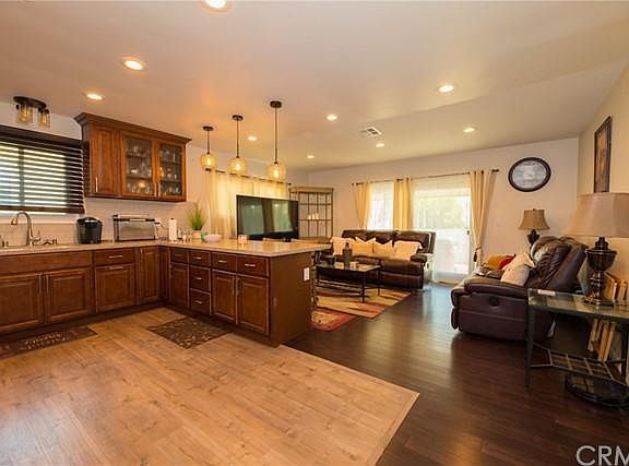 Great family home is waiting for it's new family. This home has 3 bedrooms and 1 1/2 bathrooms. Nicely sized front yard, 2 car garage with driveway that can fit 2 cars. Entry has a secured entry with a security screen door that protects the whole entry way up to the front door. Home has an open concept in the living area as the kitchen is open to the living room. Kitchen has warm modern cabinetry with granite counter tops. There is a eat at bar/counter, along with nice newer modern lighting fixtures and recessed lighting. Home has newer Java hardwood flooring that was updated 2 years ago. Two bedrooms are standard size. Full size bathroom. Master bedroom has it's own 1/2 bathroom. Backyard is a good size with a concrete covered patio. Perfect to set up your BBQ for those family gatherings. Home has a newer A/C and Heating system that was also down within 2 years ago. Washer and Dryer hook ups are located in the garage. Located close to several parks, transportation, freeways and shopping.