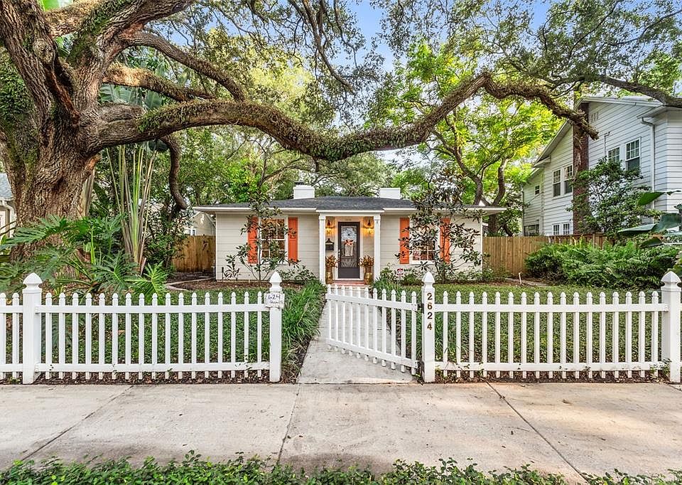 WELCOME HOME...2624 W Prospect Rd is an absolutely charming 4/3 Pool/Spa home located on one of the most sought-after streets in coveted New Suburb Beautiful with its canopied tree-lined streets and immaculately maintained homes. This home will wrap its arms around you going through the white picket gate and entering the front door. Once inside you will be impressed with the light and airy formal living room with traditional style wood burning fireplace flanked by built-in shelving. Home was built in 1941 and still has some of the features reminiscent of that era such as built-in phone niche, crown molding and hard wood flooring. There is hard wood flooring throughout the home with minimal tile. The kitchen is stunning with a contrasting modern style. Appliances are newer including an oversized side by side stainless steel Frigidaire refrigerator and a popular farm style sink. A small covered porch is located just off the kitchen. Bathrooms have been remodeled in recent years so have modern features and style. Prepare to be WOWED when walking down the long hallway past the bedrooms you see the huge Great Room with vaulted ceiling, wood beams and picturesque windows overlooking the pool bar area! Unbelievable outdoor entertainment area especially for football season and holidays. Pool and 12 person spa are heated for your year-round enjoyment. Bar is fully equipped with fridges, stove, television, party lighting and mosquito misters and more...Pool decking has a very nice aesthetic look with neutral toned brick pavers. There is a 2 car garage that has been converted into a Garage Apartment with French doors opening on to the pool area. Driveway parking in the rear of the home but also legal street parking as well. This home is "lot to lot" which means a lot of house!! A MUST SEE home for sure located in a very desired school district...all A-Rated schools. Conveniently located close to popular Hyde Park Village, famous Bern's Steak House, iconic Bayshore Blvd, Amelie Arena, Water Street, and Riverwalk. 15 minutes drive to Tampa International Airport and Raymond James Stadium. NO HOA fee required but New Suburb Beautiful offers an optional fee that contributes to neighborhood social gatherings and nighttime security via patrol officer. Homes in this neighborhood rarely come on the market so call today for an easy show!