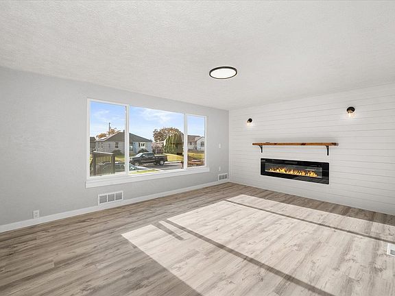 Welcome to this beautifully updated Shadle rancher offering 1,723 sq ft of stylish, functional living on a fully fenced 0.15-acre lot. The main floor features a bright, remodeled kitchen with LG appliances, pantry space, and updated vinyl windows. Enjoy new flooring, fresh paint, an electric fireplace, and a full bath with modern tile and updated vanity. Two main-floor bedrooms include spacious closets, plus two hallway closets for added storage. Head downstairs to find brand-new carpet, a large family room, laundry area with cabinetry and counter space, and a third bedroom with closet and egress windows. Step outside to a covered back patio, mature apple tree, and flexible RV parking—either beside or inside the massive 33x30 shop with upper-level storage and alley access. A front retaining wall and ramped entry on the side of the home provide great curb appeal and accessibility. This move-in ready home blends comfort, updates, and serious workspace. Come see it today!