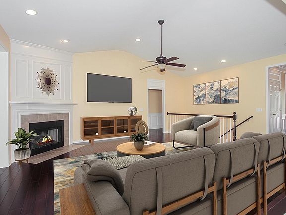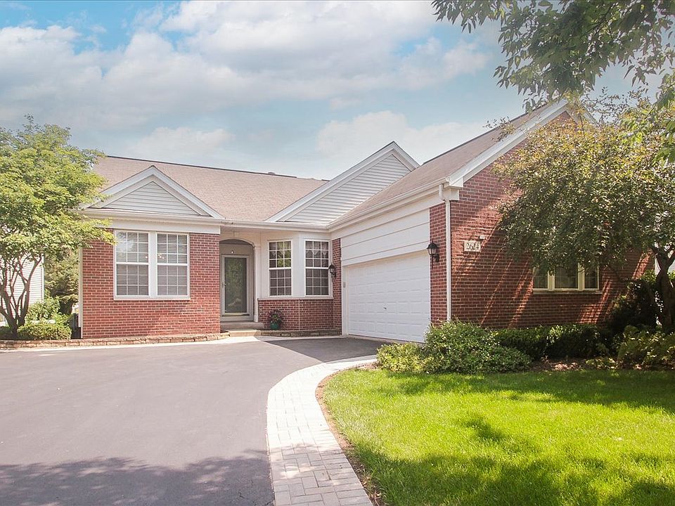Beautiful, well maintained ranch in Carrington Reserve! New pavers adorn driveway leading to front door. Elegant entry with all white doors, trim, canned lights and wainscotting. The entire home is light and bright, with volume ceilings in the great room and primary bedroom. Home features an office or den with French doors off entry. The Great room features a gas fireplace, canned lights, hardwood flooring and is open to the kitchen, eating area and sunroom. The eating area has sliding glass doors to your beautiful yard and paver brick patio. Formal dining room with access to butler's pantry for ease and enjoyment of entertaining. The primary bedroom has a volume ceiling with a lighted fan and canned lights as well. The primary bathroom has dual sinks, soaker corner tub and a full stand-alone shower, plus a walk in closet too! Full sized laundry room with coat closet, utility sink and access to attached garage. Home also features a partial unfinished basement with solid crawl space for great storage. Low monthly association includes lawn and snow removal, plus trimming of bushes, mulch & fertilizer. A new Furnace and A/C have been installed just this year! Please note that home being sold "as is".