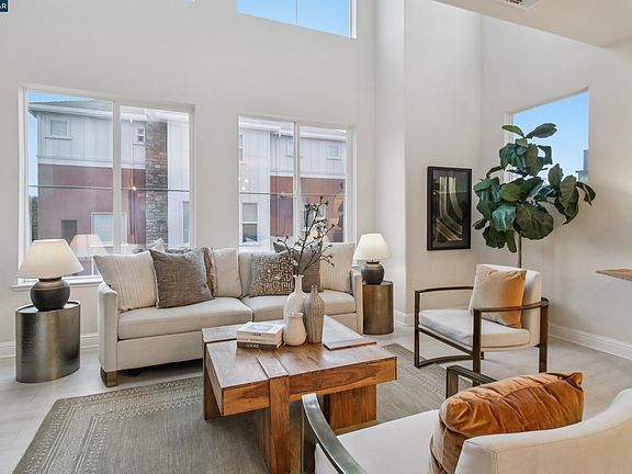 Like brand new in a small enclave of just 37 homes, located steps from Todos Santos Plaza this meticulously maintained single-owner home was built in 2015. Offering 1,777 sf. of living space where modern aesthetics meet comfort and functionality with fresh paint, plush new carpeting and durable luxury vinyl this home is truly move in ready. The main level features a versatile bedroom or office with a full bath and outdoor access, ideal for guests or a quiet retreat. The second level showcases soaring ceilings and numerous windows that flood the space with natural light. A spacious eat-in kitchen and generous family room are anchored by a cozy gas fireplace, creating the perfect setting for entertaining or relaxing evenings at home. Upstairs, the primary suite feels like a spa retreat with a soaking tub, separate walk-in shower, and dual vanity, plus another bedroom and full bath. Additional highlights include paid solar panels for added energy efficiency, a two-car garage, laundry room with sink and cabinetry, ample storage throughout, and a darling outdoor patio with sleek horizontal redwood finishes—a tranquil spot to enjoy the fresh air. Unique to the area, updated, and perfectly located near restaurants, coffee shops, shopping, and BART. Hurry, this special home won’t last!