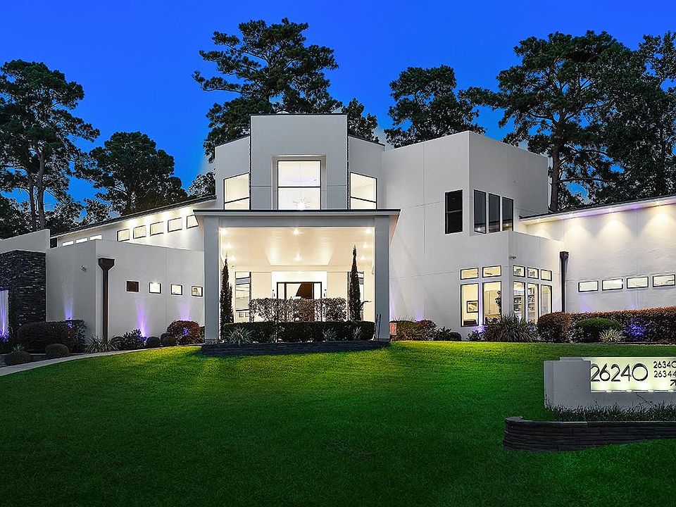 Spectacular contemporary masterpiece in the gated enclave of McDonald Estates! The climate controlled 7 car capacity garage w/5 bays, 2 car lifts and epoxy flooring will entice any car enthusiast, and a circular drive ensures plenty of parking. A covered portico leads you to the dramatic entry, where you'll find a modern curved staircase, sky high ceiling heights, enormous windows, a Control 4 home automation system, hardwood and tile flooring, incredible light fixtures, and open concept space that lives like a 1 story. The sleek island kitchen with breakfast bar, Thermador gas cooktop, dual ovens, built-in fridge and auxiliary prep space for catering overlooks the family room with floating shelves and views of the private backyard. Home theater with 120" screen and Sony projector; fully equipped gym; private study; owner's retreat and 2nd bedroom suite downstairs; two bedrooms up; backyard oasis features a stunning pool, spa, and outdoor kitchen with a canopy of trees as the backdrop.