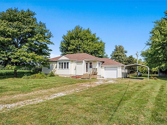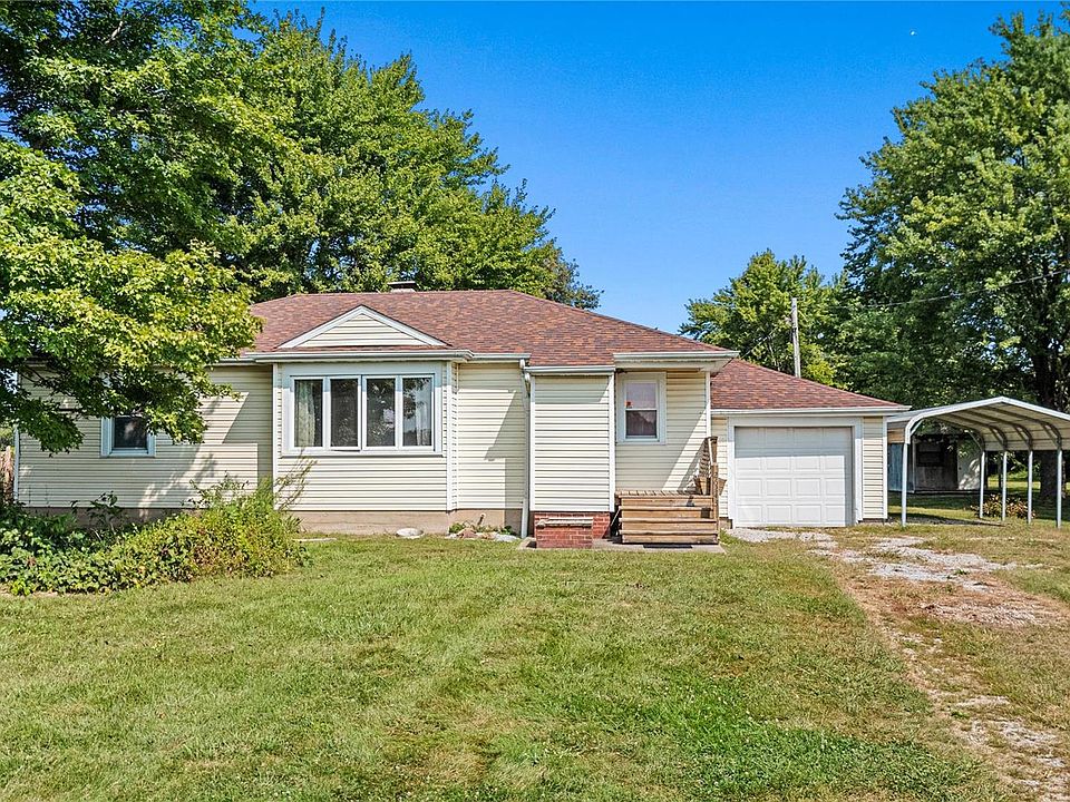 What a find! This ranch style home sits on almost 10 acres just outside of Hoyleton. Inside you'll find hardwood floors, arched doorways, an eat in kitchen with a small peninsula and plenty of counter and cabinet space along with a built in china cabinet that has access on the other side of the wall into the living room. One of the three bedrooms has a fireplace (not aware if it is functional) and there is a full bath. The full basement offers plenty of storage. Speaking of storage, there are additional outbuildings including a shed and another 288 sq ft storage building. Enjoy the gorgeous wooded lot from the back gazebo! Park your extra toys under the carport or in the attached one car garage. So much to offer on such a large lot! Property is sold as is.