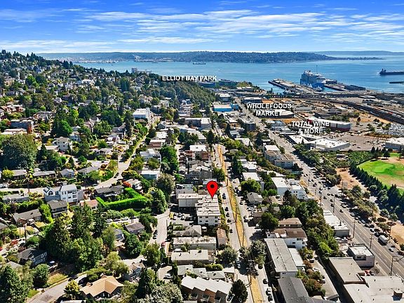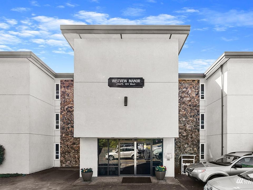 Beautifully updated condo located in Queen Anne's West Slope. Tons of natural light from the west facing balcony. Breath-taking views of Elliot Bay and golf course. Practical open floor plan with hardwood floors throughout, renovated bathrooms with tiled walls. Large dining area, and a king-size bedroom. IN-UNIT Washer and dryer. Additional Storage Unit. Well managed HOA, pet-friendly. Water, garbage, sewer, and cable/internet included in dues! You will love living in this quiet, and peaceful residential neighborhood. A short walk to Whole Foods, QFC, and Total Wine and More. A quick drive to Fremont and Ballard restaurants and venues. Turn key and ready to move into!
