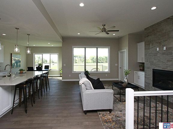 Upscale townhome development by Manion Construction. Most units are on walk-out lots backing to sod farm w/open spaces & great views. Universal design concept: wider doors, low-profile walk-in tile shower, wide staircase etc. Over 2,500 finished sq.ft., 3 beds/3 baths, extensive use of granite/tile/LVT, taller ceilings, gas fireplace & partially covered deck w/ composite boards & aluminum railing. Space on main level is efficiently maximized by open kitchen/living/dining concept. Spacious master suite features double sink vanity, walk-in tile shower & large walk-in closet. Kitchen w/ granite/quartz countertops & tile backsplash, gas stove, center island, corner pantry, LVT flooring in kitchen and dining room. Mudroom separates living area from garage. Laundry with sink is conveniently located on next to master closet. Basement offers a bedroom, full bath, huge (27'x17') family room w/wet bar & large storage. Finished garage. Full sod & UGS.