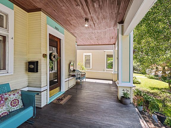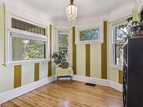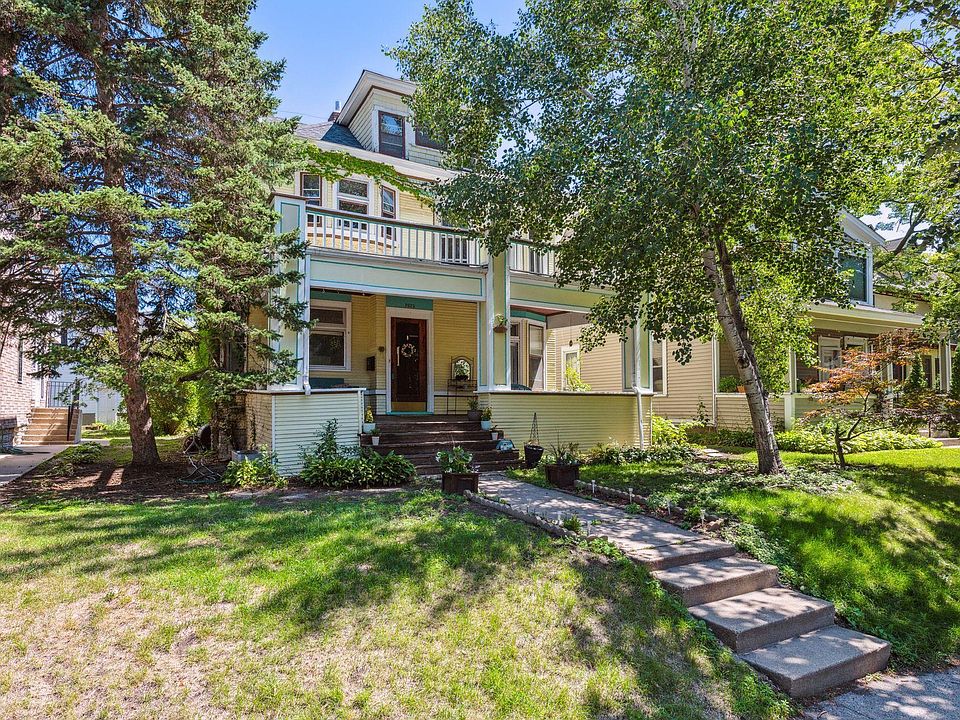 This gorgeous Lowry Hill East Victorian is bursting with character, color, and old world charm! Upon entering via a spacious open front porch, you will find stunning, newly refinished hardwood floors throughout. This house features custom, unique leaded glass windows, original vintage-tiled fireplaces, art deco antique light fixtures, and a built-in buffet. The massive staircase is a show stopper, with ornate natural woodwork and the original wall covering. Custom designed, retro-styled eat-in kitchen, plus formal dining room. Three bedrooms on the second level-primary bedroom has lovely seating area with cozy wood burning fireplace, built-in bookcases, and walkout balcony. Finished sunny attic space with additional bedroom, family room, downtown views, and 3/4 bath. Full baths on first and second floors. Space in basement perfect for finishing. New roof 2019- Full of personal touches/improvements with room to make it your own (See supplements for details).